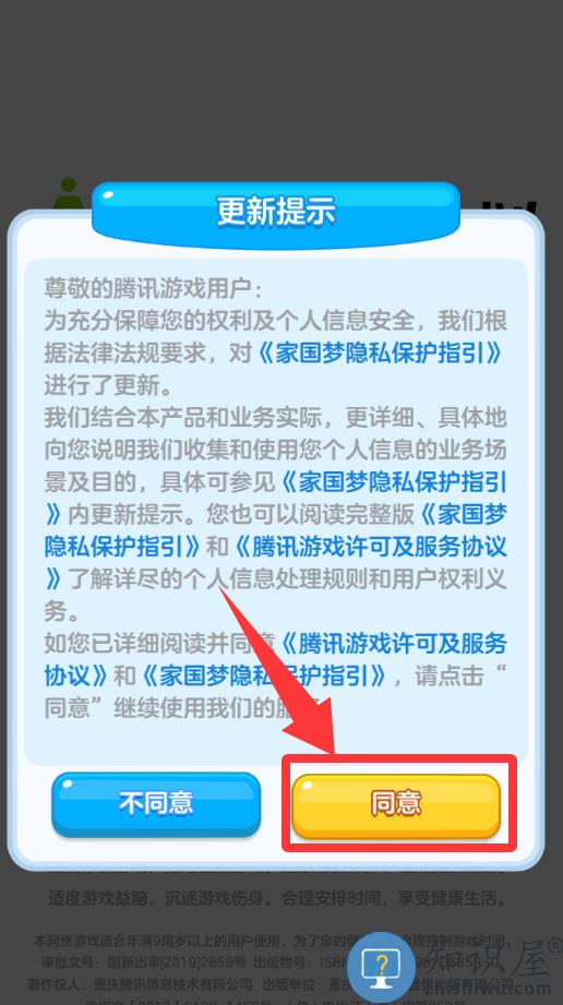 3、点击更新提示里的同意并进入游戏。