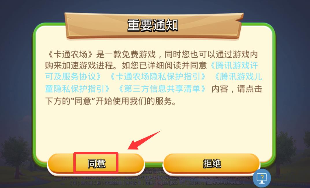 1、点击红色框框里的同意并进入游戏。