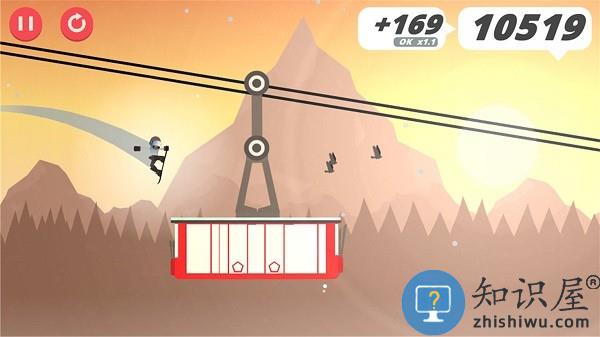 2、做出特技动作获取高分并躲避雪崩危险。