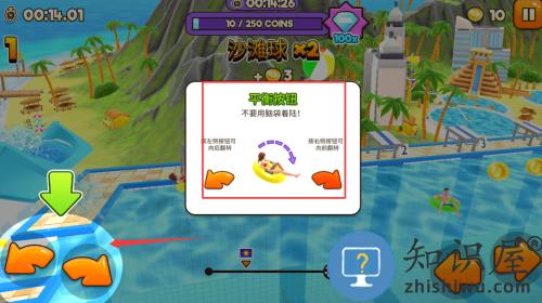1、点击沙滩球,使用平衡按钮避免头部着陆。