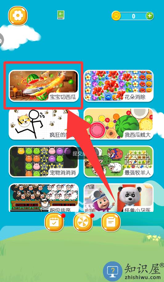 3、进入游戏界面点击红色框框里的宝宝切西瓜。