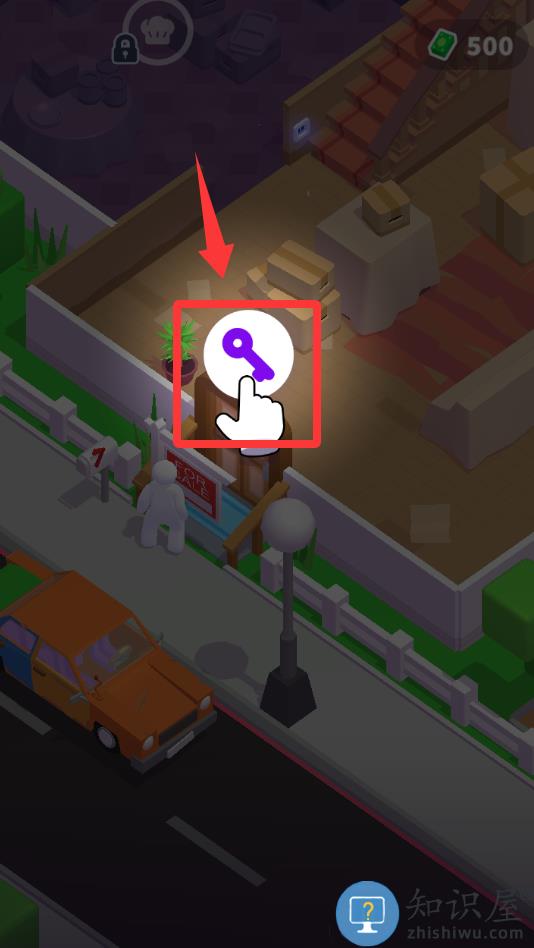 3、进入游戏界面点红色框框里的钥匙图像。