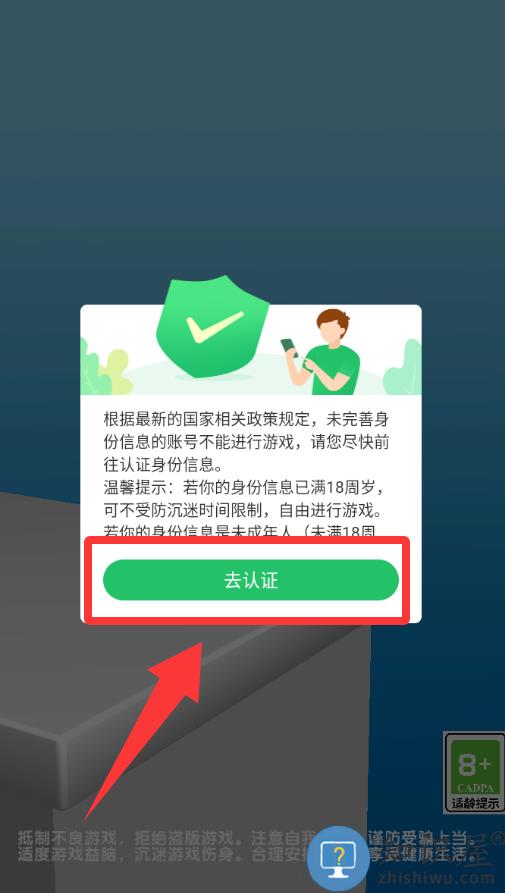 2、进入游戏要认证身份,点击红色框框里的去认证。