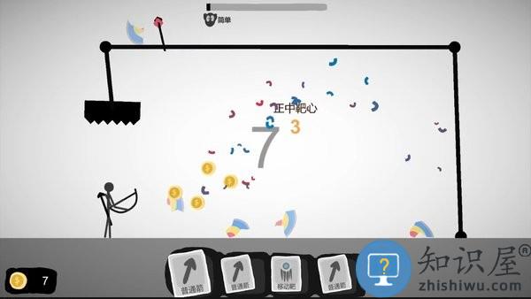 2、控制火柴人拉弓射箭,瞄准靶心获取分数。