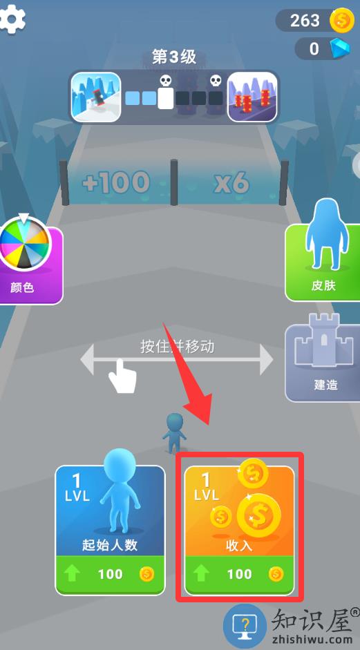 1、进入游戏界面点击红色框框里的收入升级。
