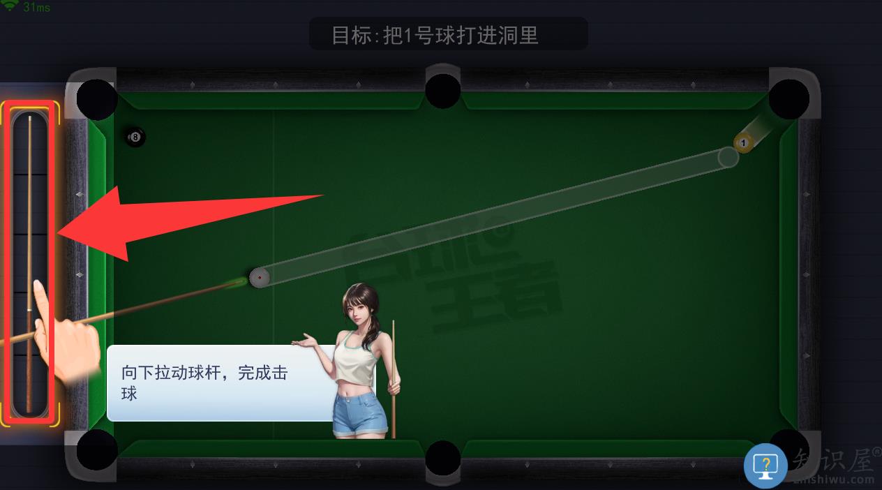 2、点击滑动球杆,将球杆瞄准线与虚线重合。