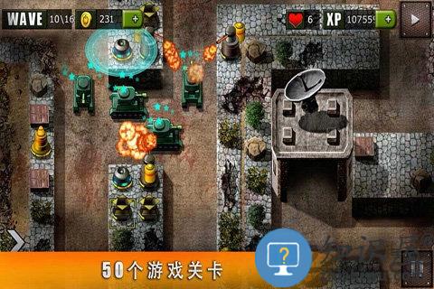 根据游戏进度会慢慢解锁更多的武器,总共有6种不同的设施和敌人,30多个关卡,两种不同主题的地图,从步兵到坦克到飞机应有尽有!是消磨时间的好游戏。