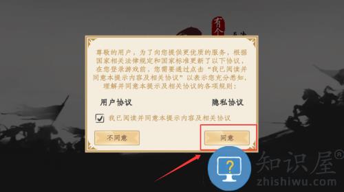 2、点击同意按钮,确认用户协议和隐私政策。