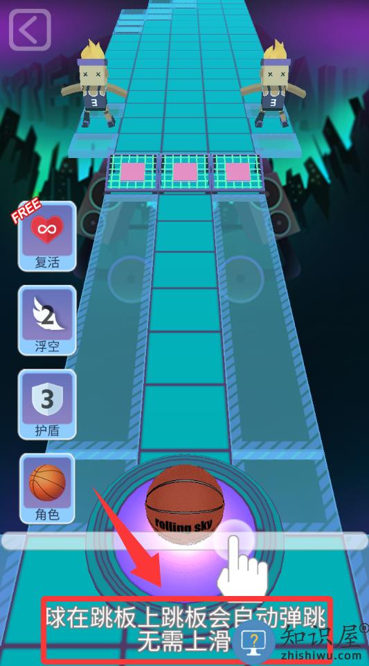 - 手指左右操控滚动的小球,小球别偏离跑道