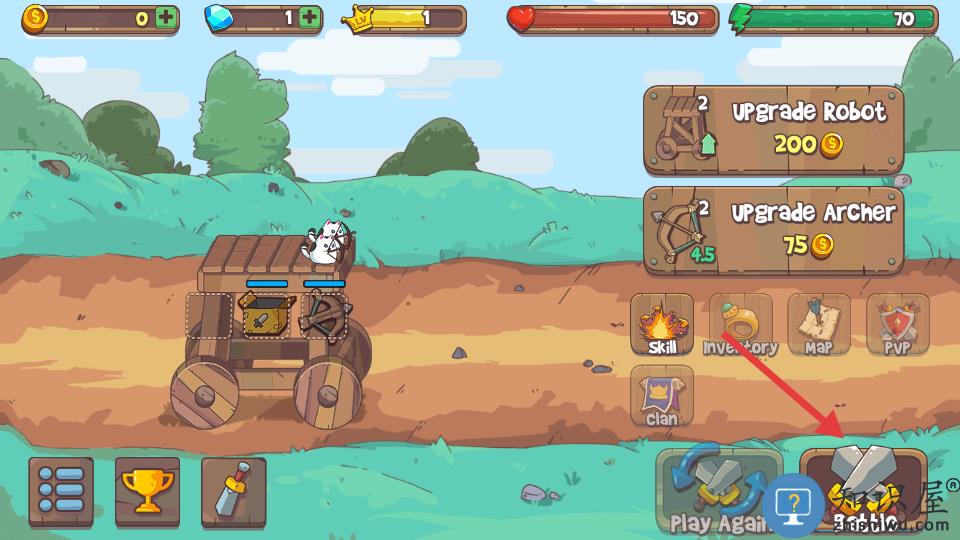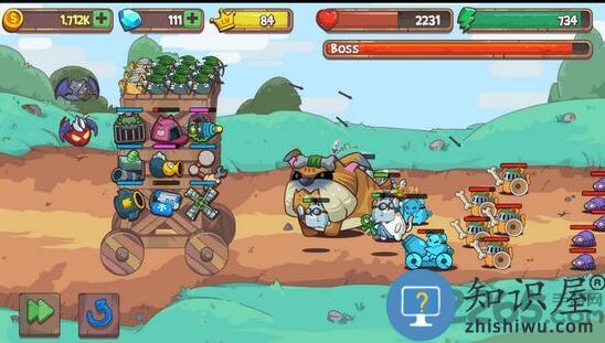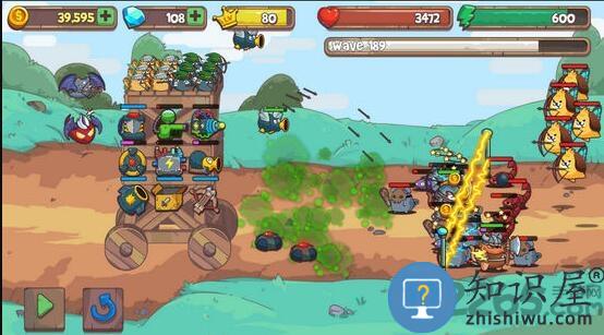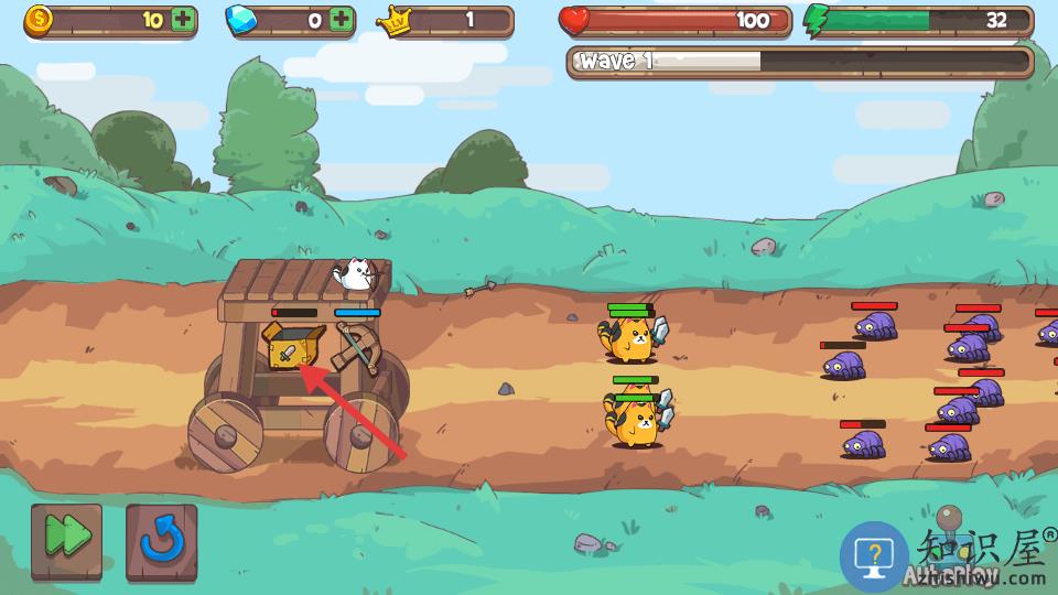 1、升级机器人炮台并部署多样化的猫战士军团。