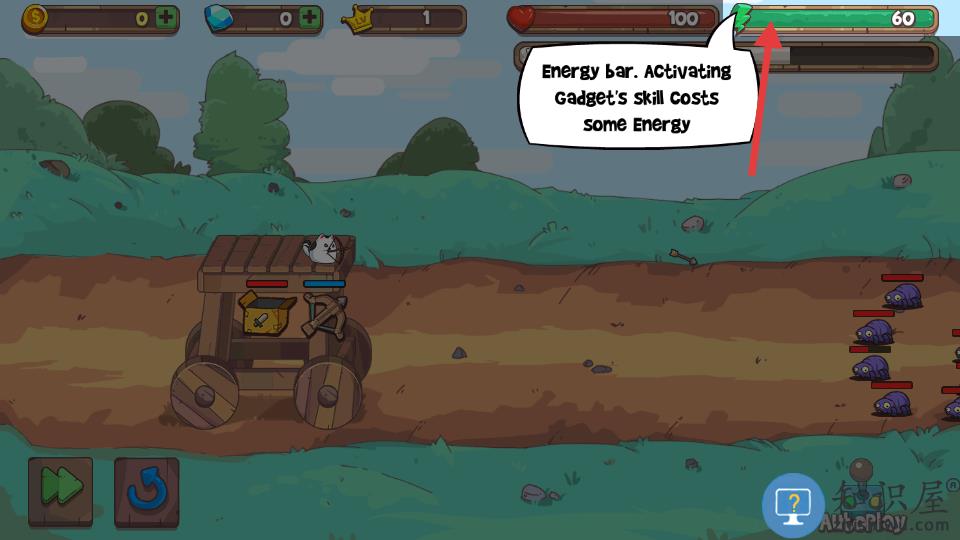 1、通过升级炮车来部署更多猫战士对抗敌人。