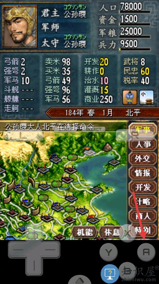 2、通过内政指令发展城市经济,招募武将壮大军事力量。