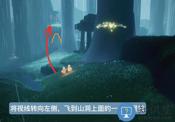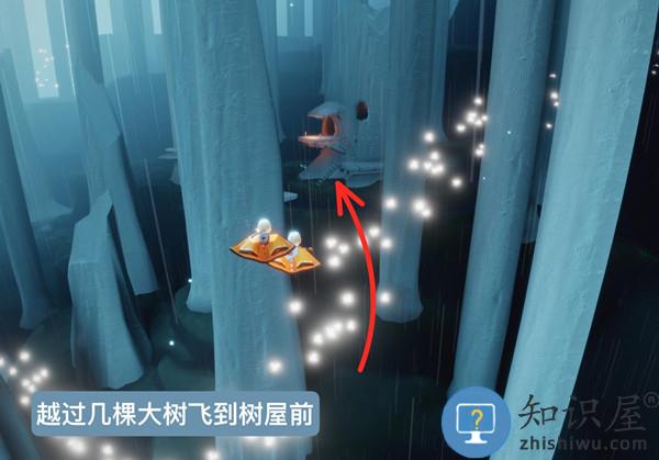 2、接着往左侧的树屋飞去,绕到树屋后面找先祖。
