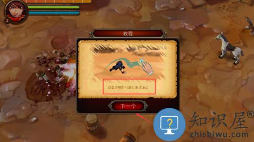 3、双击屏幕进行翻滚动作,点击下一个继续教程。