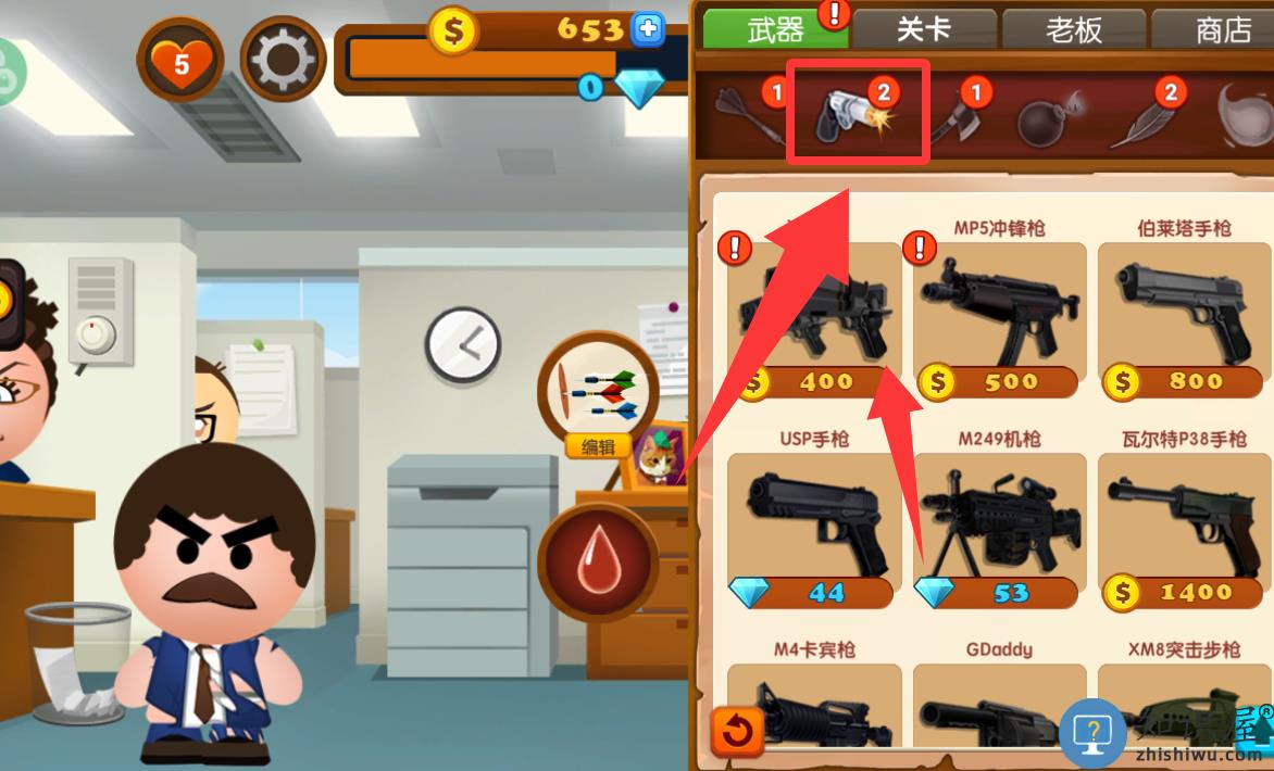1、进入游戏点击商店里的武器栏里选择手枪。