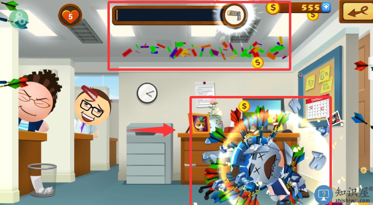 操作方面还是采取了点击拖动等方式,点击选中需要使用的武器,然后长按屏幕武器就会对老板进行自动攻击,直到把老板打得趴在地下爬不起来为止。说到这些武器,那可叫一个屌炸天呀,里面不仅有各种只有在CS之类游戏里才能见到的高级军火武器,还有你从来没有见过的核武器,原子弹,火箭等等,看到这些可怕的东西,还真有一点为老板的安危担忧啊……