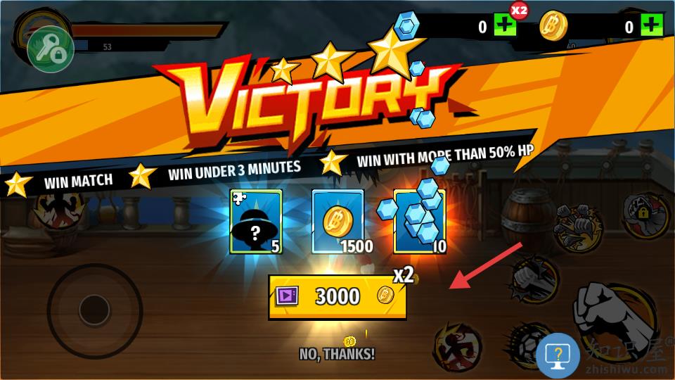 1、左侧点击爆气再点击右侧大招可以快速击败敌人。