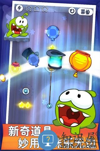 游戏操作便捷,你只需滑动手指,剪断绳索,并在各色新奇道具的帮助下,想方设法使绑着的糖果掉入小吃货Om Nom的嘴里,即可圆满它甜蜜的糖果梦。