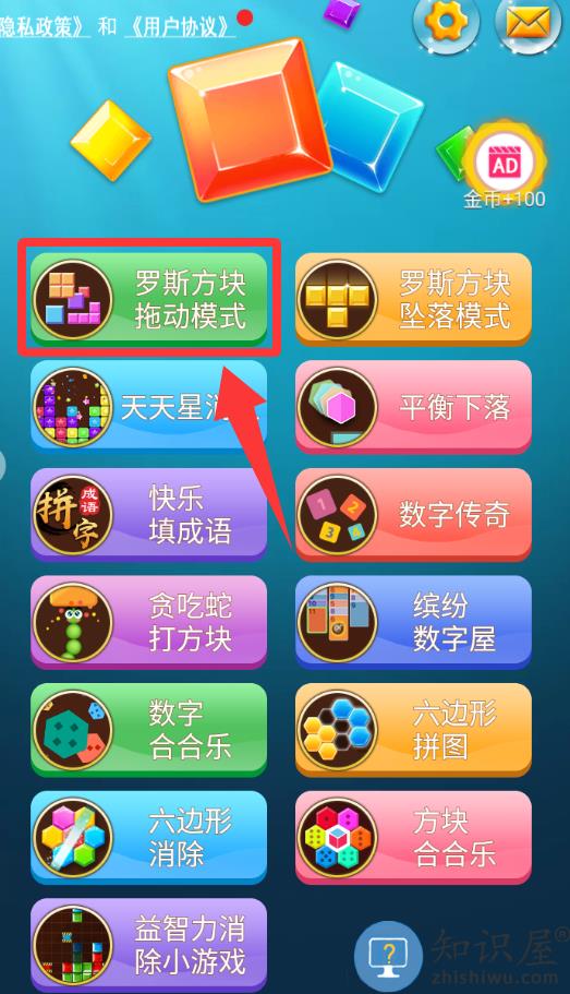 拖动模式:将屏幕下方的三个备选方块拖入宫格中,一行或一列铺满即可消除,直至备选方块无法放置,则消除游戏结束。