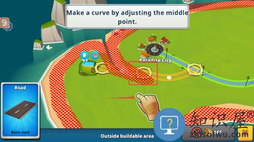 1、在绿色可建造区拖动道路中间点,画出弧形赛道通向天堂城。
