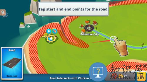 3、避开现有建筑完成道路铺设,注意红色相交提示及时调整。
