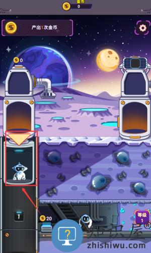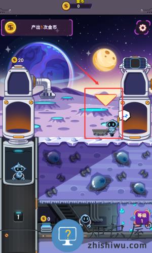 1、点击红框标注的蓝色机器人,它会自动开始挖矿收集金币。