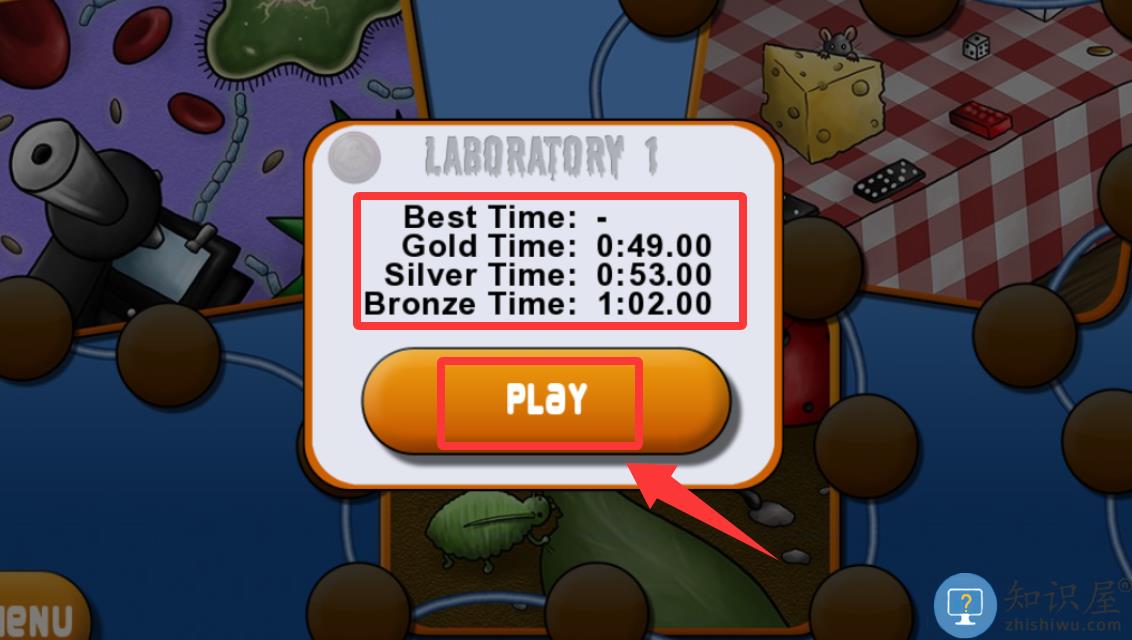 1、进入游戏关卡模式,点击红色框框里的第一关。