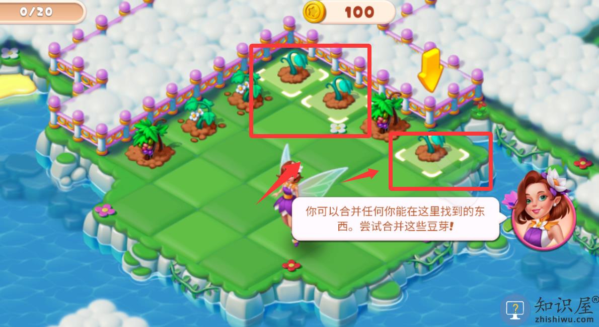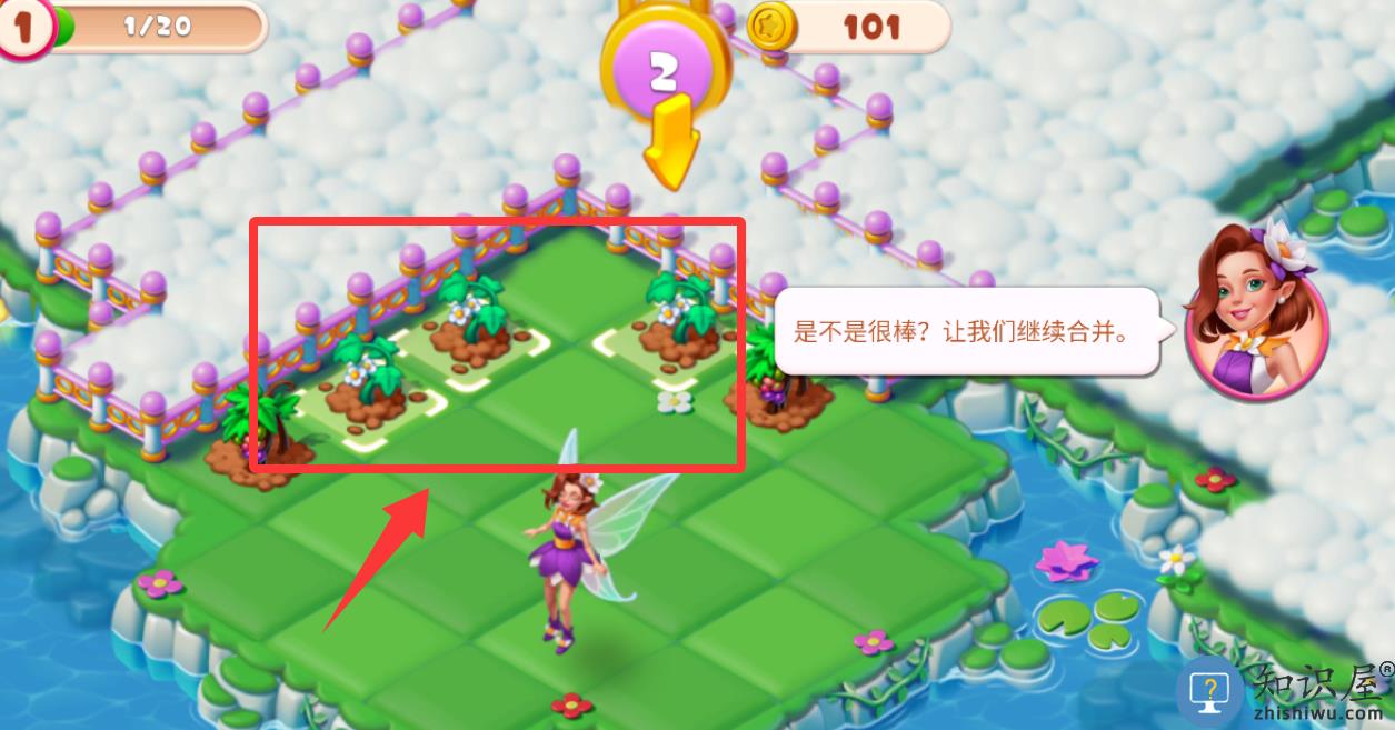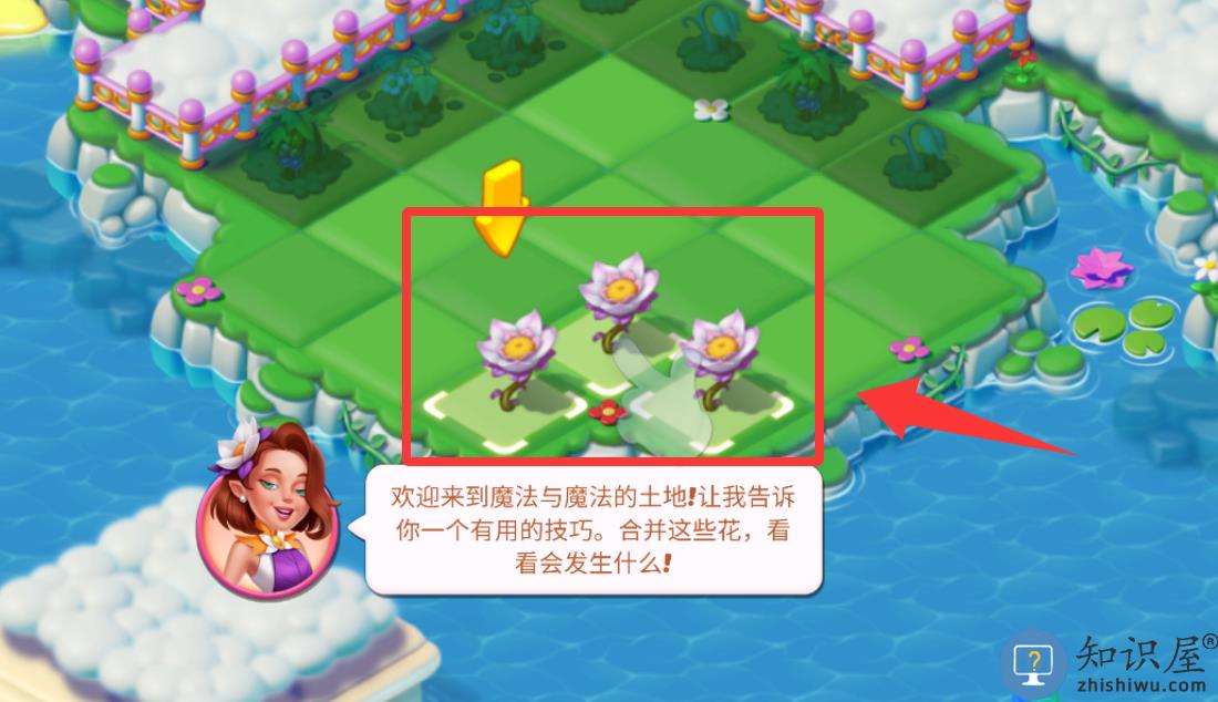 1、进入游戏界面把3朵鲜花合成看看。