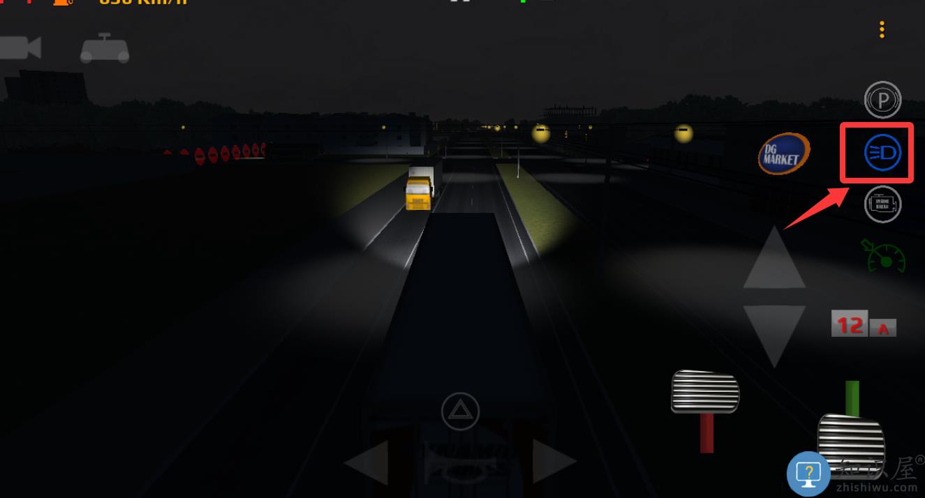 1、进入游戏现在是夜间行车,点击红色框框里的灯光。