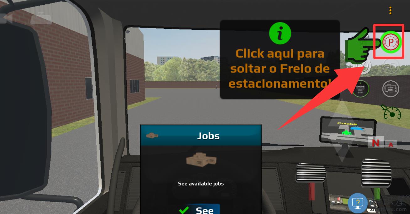 1、进入游戏点击红色框框里的驻车制动键解除。