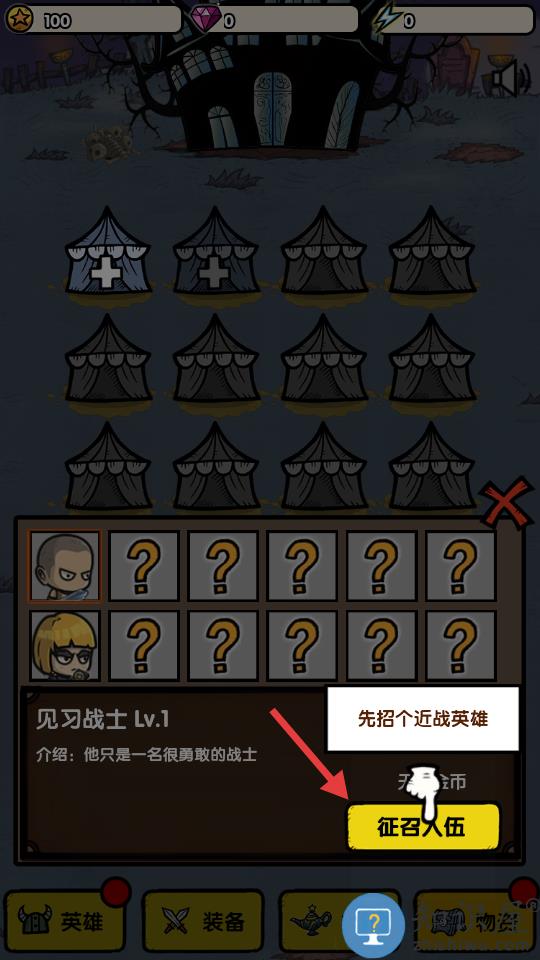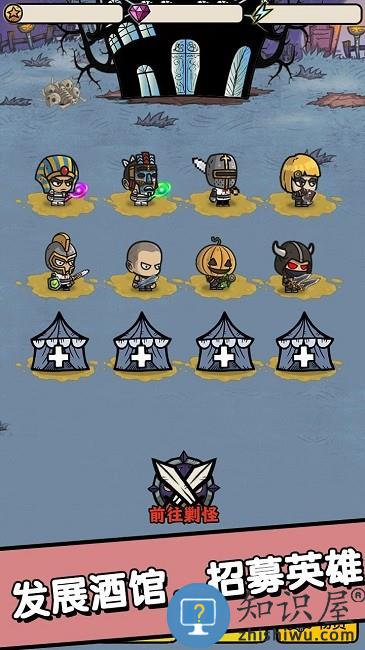 1、开发酒馆招募十二种职业英雄进行布阵。
