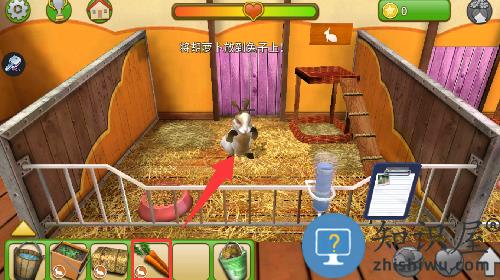 1、进入游戏点击胡萝卜放在兔子的身上。
