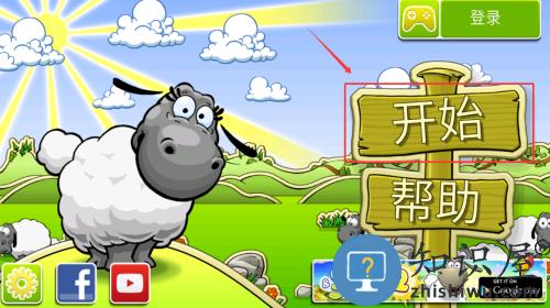 1、在游戏主界面点击木牌上被红框标注的开始按钮,准备进入牧场。