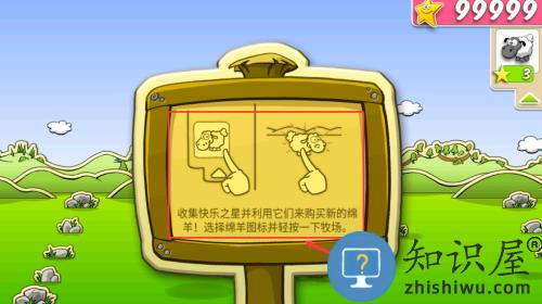 3、根据提示点击羊群图标,用收集到的快乐之星在牧场购买新的绵羊。
