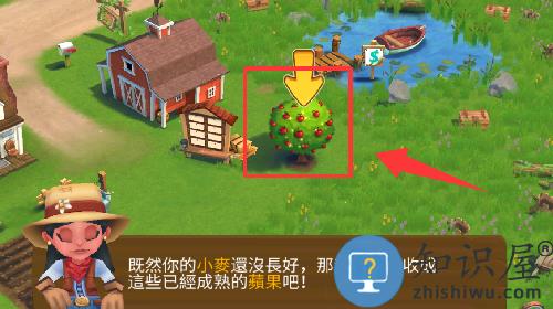 3、点击游戏界面里的成熟苹果把它摘了。