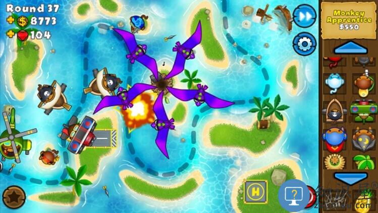 1、部署不同功能的猴子防御塔抵御气球进攻。