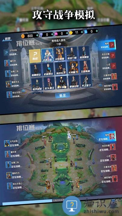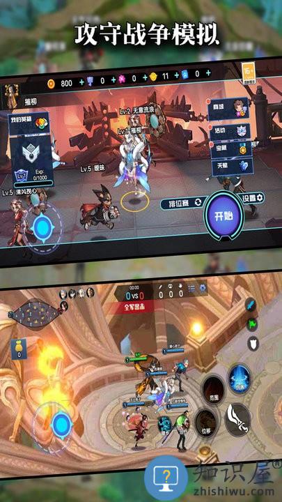 1、选择独特技能的英雄与队友组成五人队伍展开攻防。