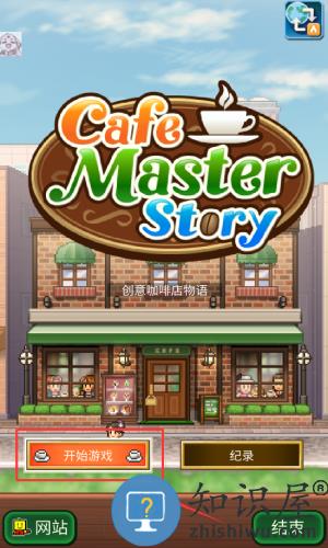 1、点击主界面红框标注的开始游戏按钮,进入咖啡店物语。