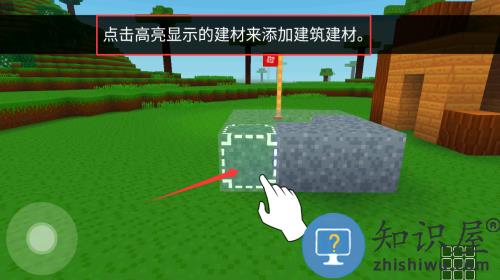 1、点击高亮显示的建材,学习添加建筑方块的方法。