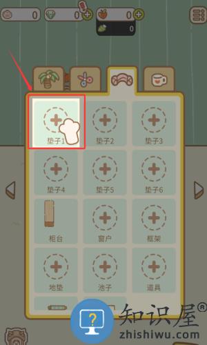 3、在建造面板选择垫子等物品,放置到虚线框区域。