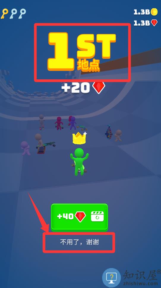 3、恭喜你获得了第一名,点击红色框框里的谢谢继续下一关。