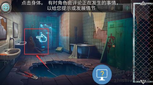 2、按照红框提示点击角色身体,通过对话获取关键线索提示。