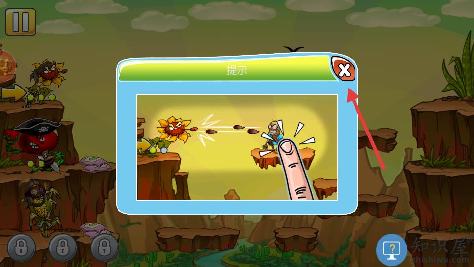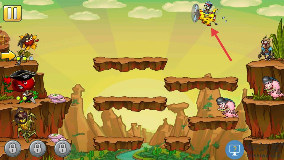 1、滑动屏幕发射植物炮弹击退飞行僵尸。