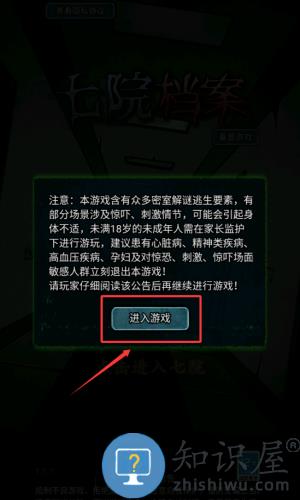 1、阅读风险提示后点击蓝色进入游戏按钮,确认开始解谜。