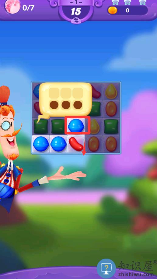 4、进入游戏把红色框框里的蓝色糖果往下移进行3消。