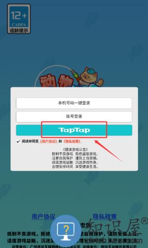 2、在登录方式选择界面点击蓝绿色TapTap按钮进入授权。