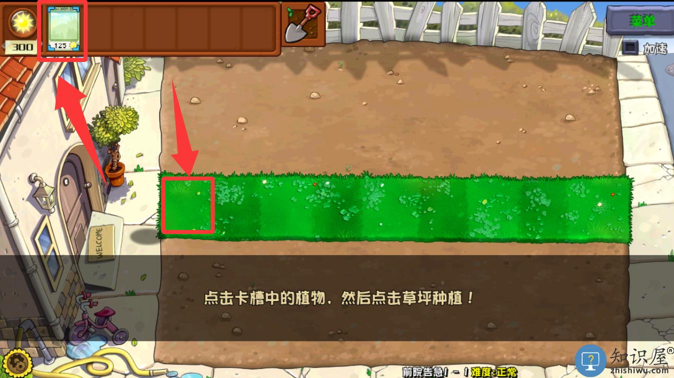 3、点击卡槽里的植物然后点击草坪里种植就可以了。