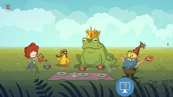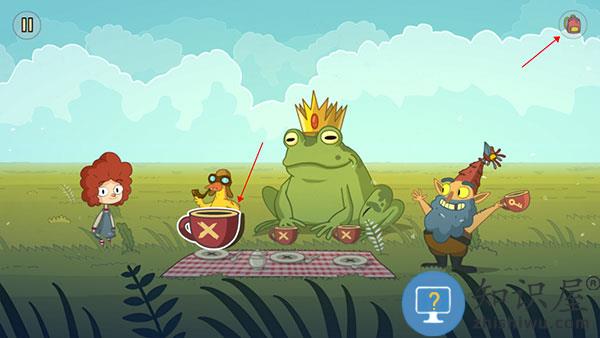 2、然后我们可以看到一个草坪上的青蛙,点击它,会出现小女孩。