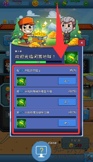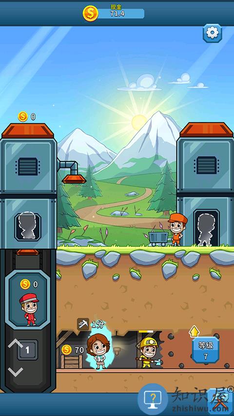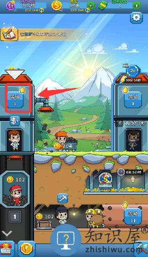 1、在游戏中首先根据新手指引点击地下矿中的穿黄色衣服的矿工,然后他会进行挖矿,挖好矿后会背到左边靠近电梯的小箱子里面,这时点击在电梯中的红色衣服矿工,他会把箱子里面的东西传送到上方机器里面,然后点击在地面推小车的红衣服矿工,他会推着小车到机器下面接金币,送到原地。这三个矿工的规律性比较强,下面黄色的矿工可以一直进行挖矿,然后电梯里的矿工只需要吧挖好的矿石进行往上运送即可,地面上的工人,在机器下接住矿石推回原地就可以获取金币。