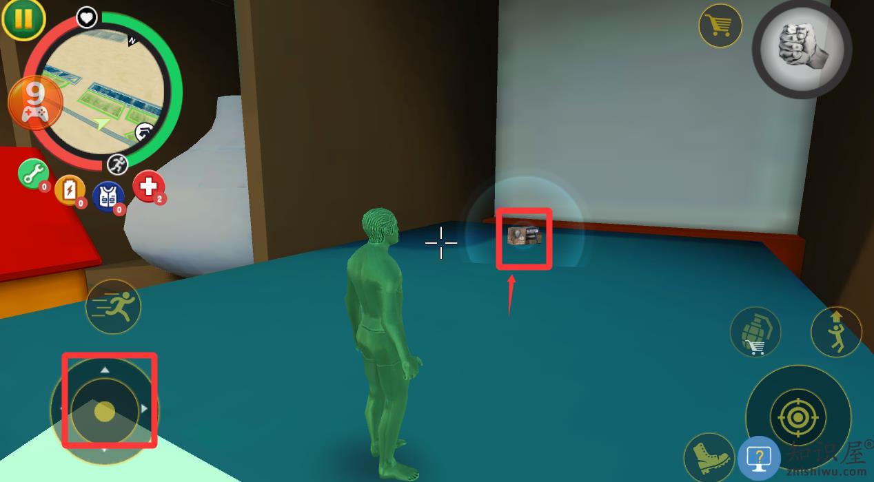 2、进入游戏移动角色到红色框框哪里捡道具。